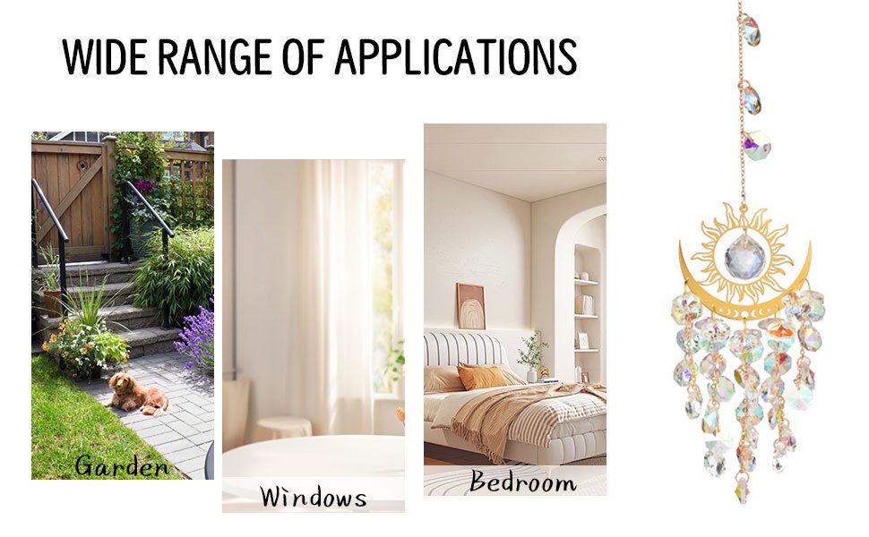 Product features: Hanging in the sun, next to the window, door or table, it creates a beautiful light refraction and allows you to see your own rainbow. Home office garden windows and car decoration. The shiny spots will drive away the birds.