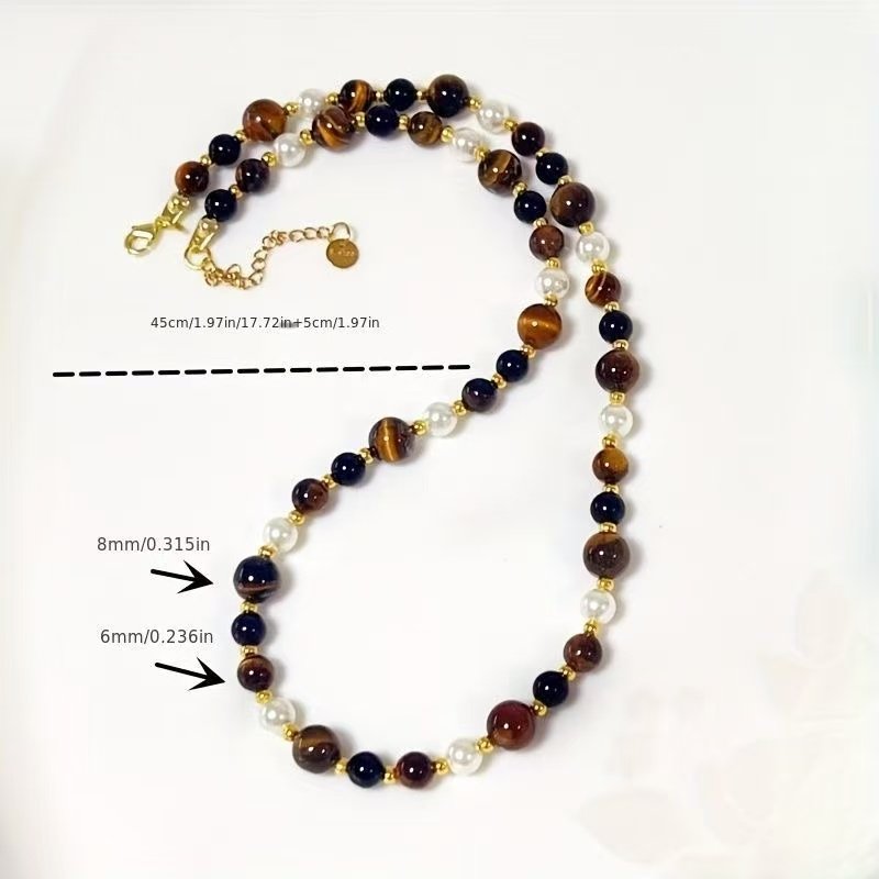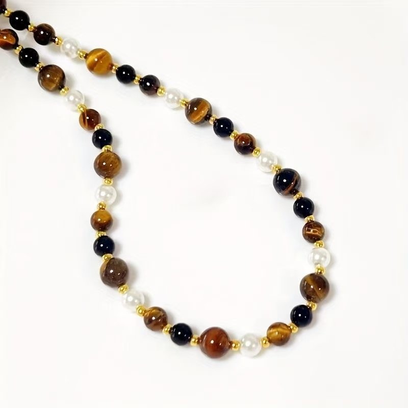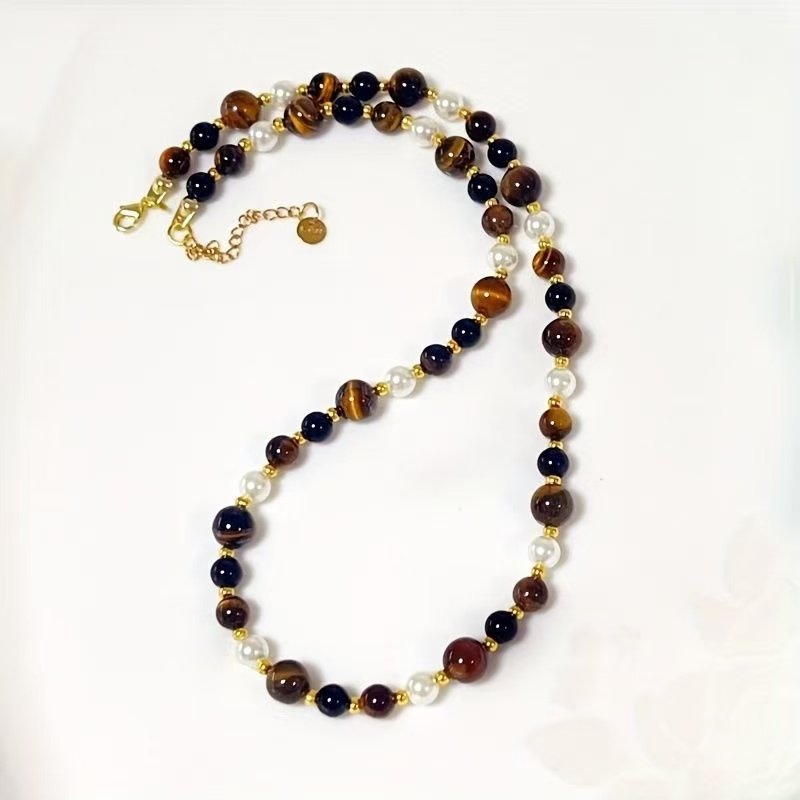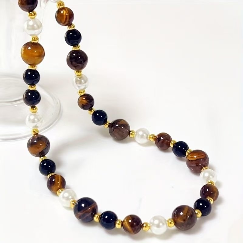 gentle tiger’s eye stone pearl necklace Handmade Boho Bead Choker Necklace for Women Jewelry with Gifts Box
